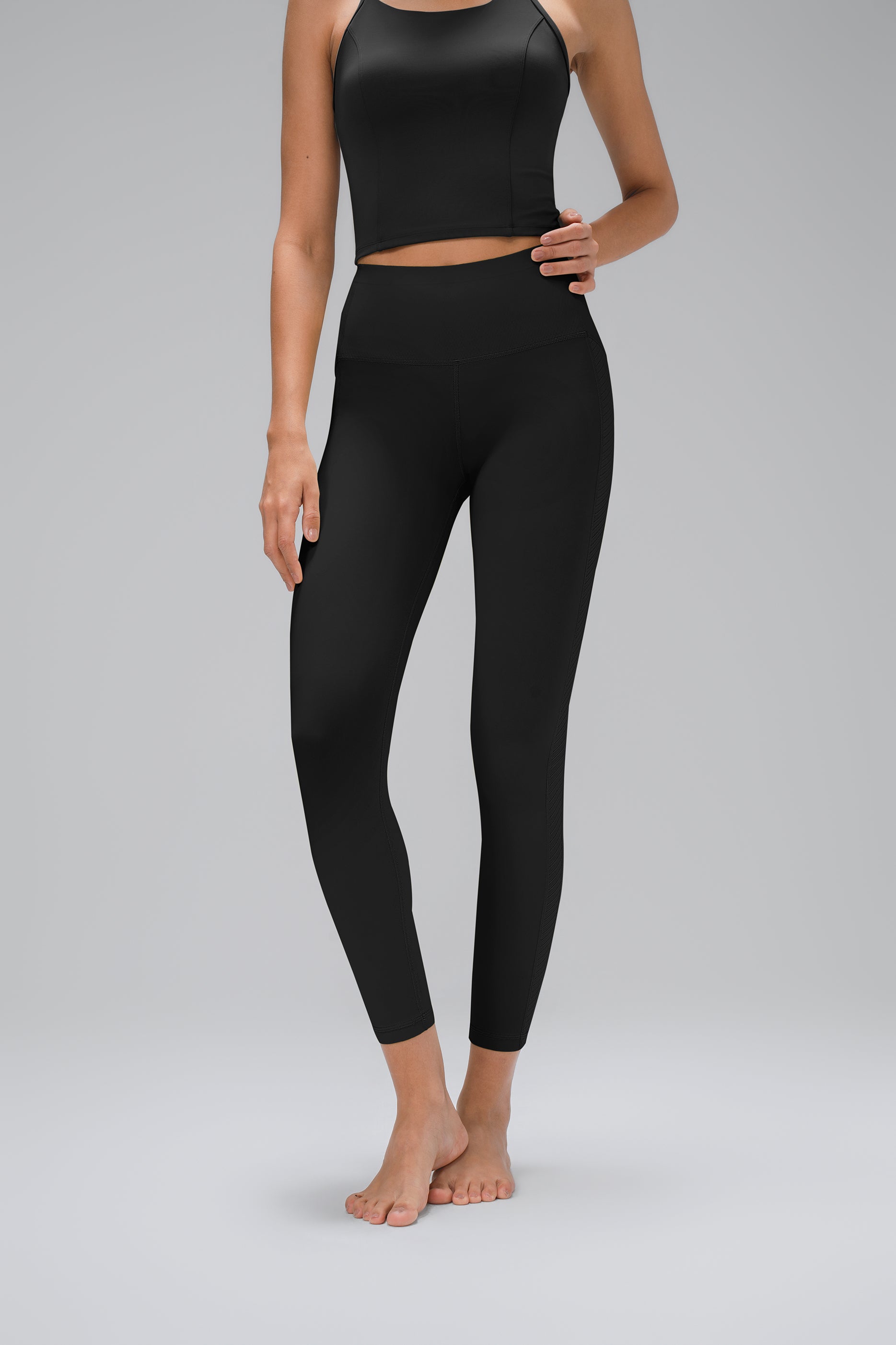 Perfekt für Yoga, Barre oder deinen entspannten Sunday Stretch: Die Nele Leggings kombiniert ein cleanes Design mit soften Kontrasten und hohem Tragekomfort. Der breite, nahtlose Bund sorgt für einen angenehmen Halt, während das glatte, elastische Material jede Bewegung mitmacht. Dezente Struktureinsätze an den Seiten verleihen der Hose das gewisse Etwas.