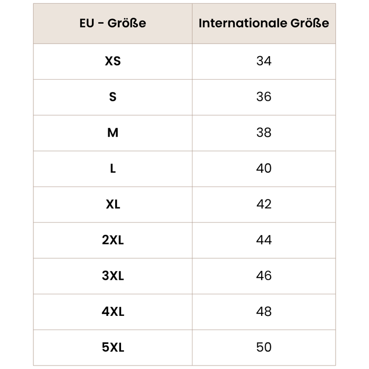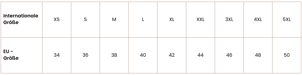 Größentabelle Ober- & Unterteile
