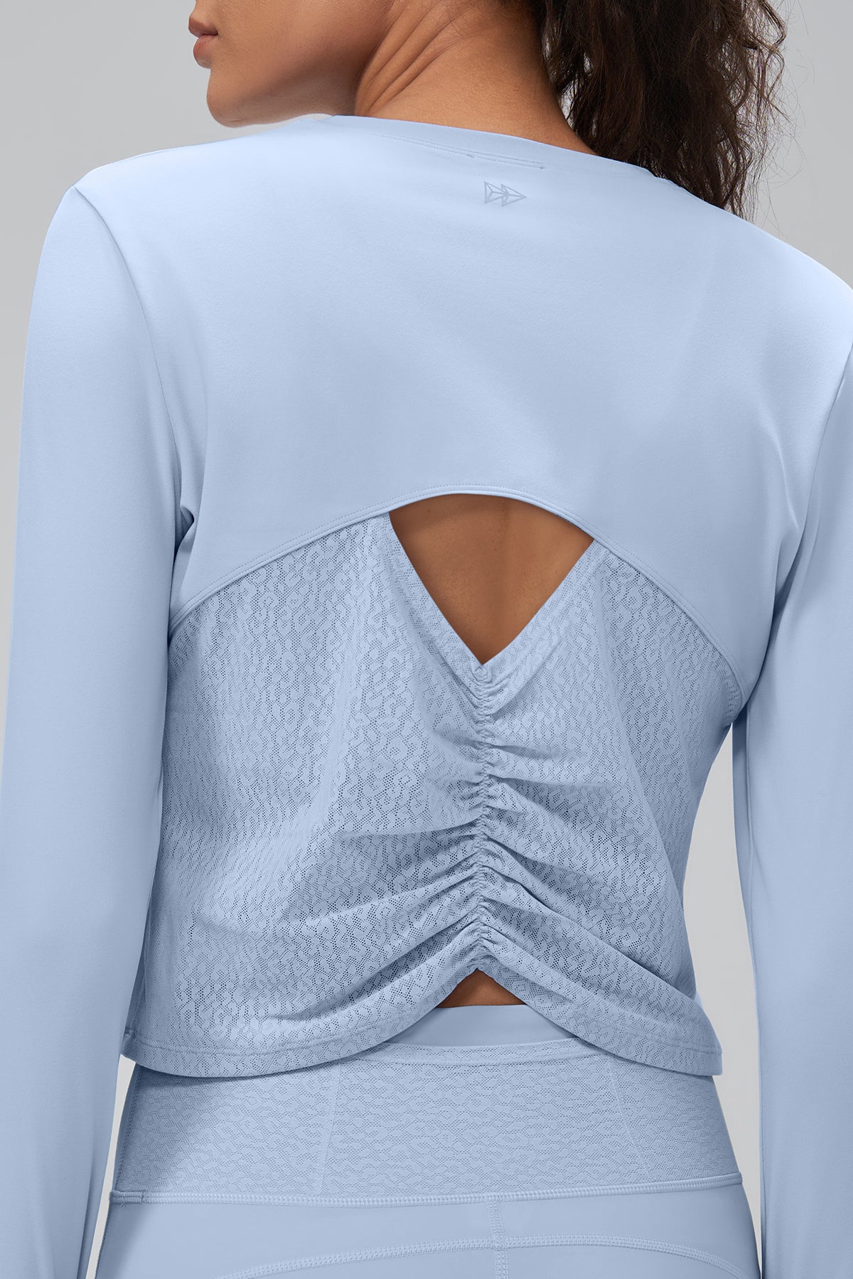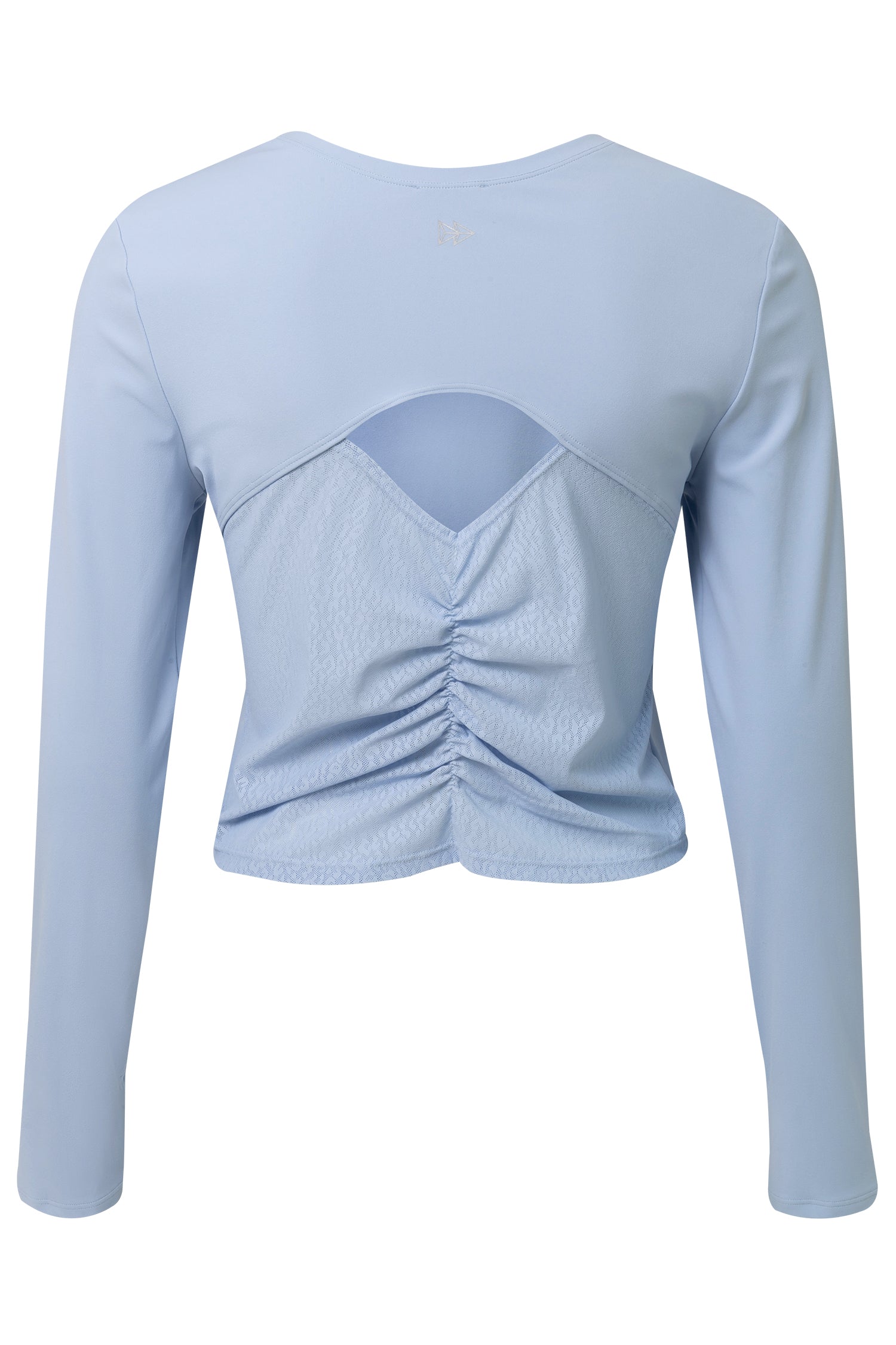 Dieses Crop-Longsleeve vereint verspielte Details mit funktionalem Design. Das leichte Funktionsmaterial trägt sich angenehm auf der Haut, während der Rückenausschnitt mit Raffdetails und Leo-Mesh-Einsatz ein echter Hingucker ist. Ideal für dein Workout oder als stylisher Layer für davor und danach.