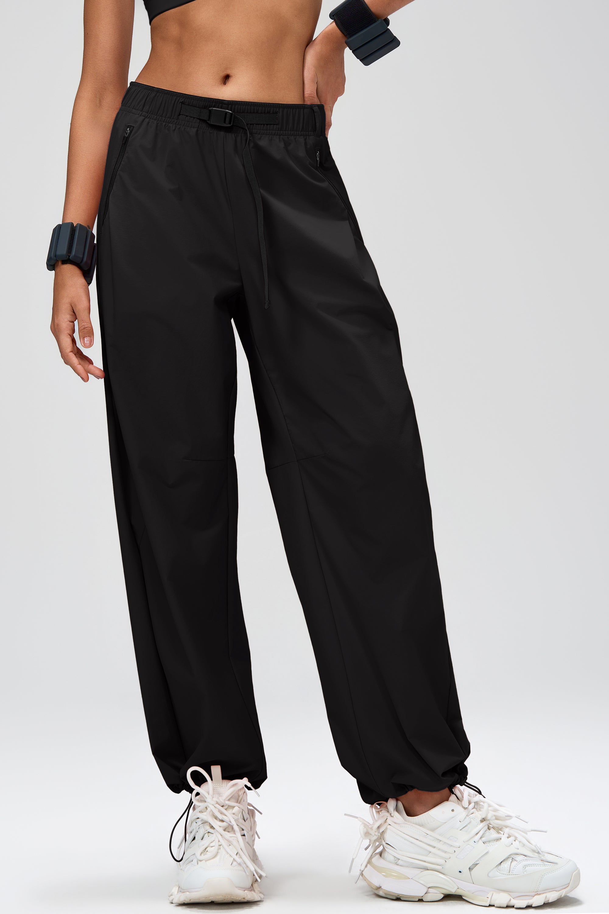 • Elastischer High-Waist-Bund mit integriertem Gurtband