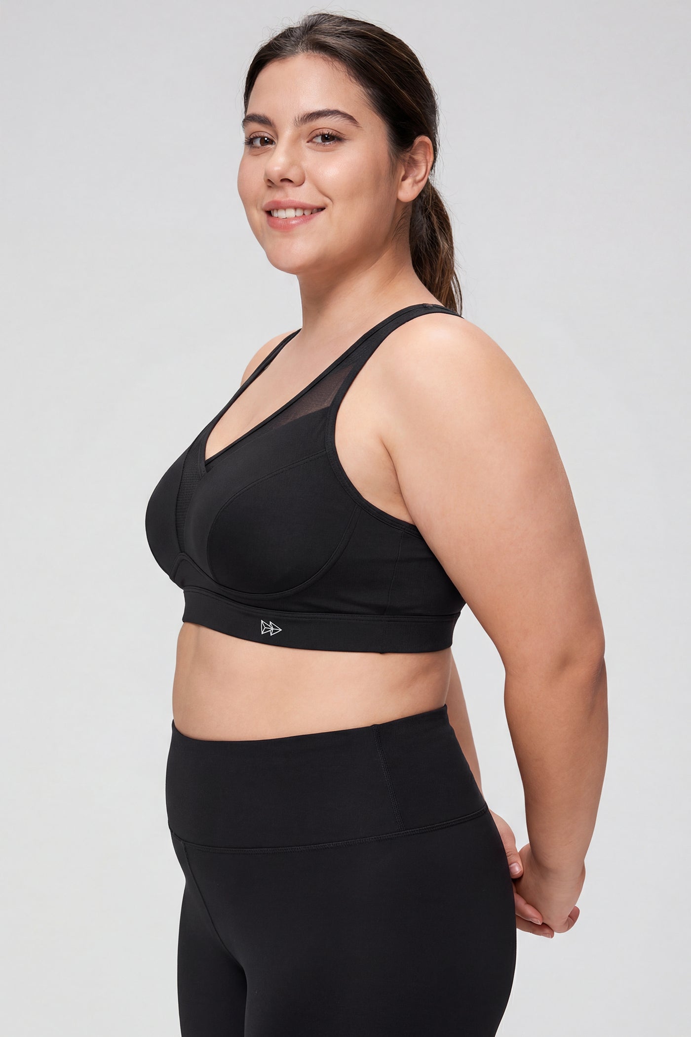 - Elastisches Unterbrustband für stabilen Sitz