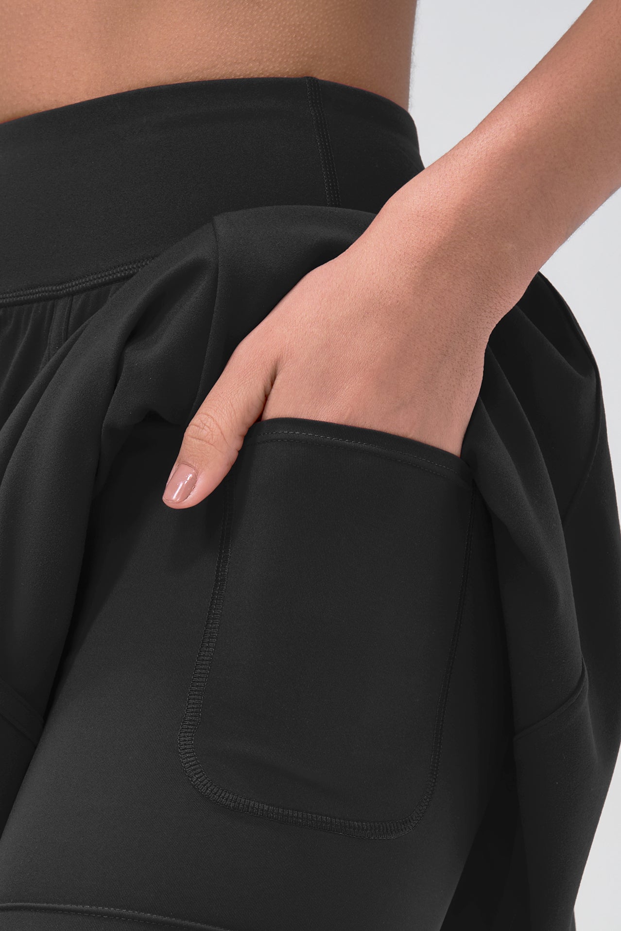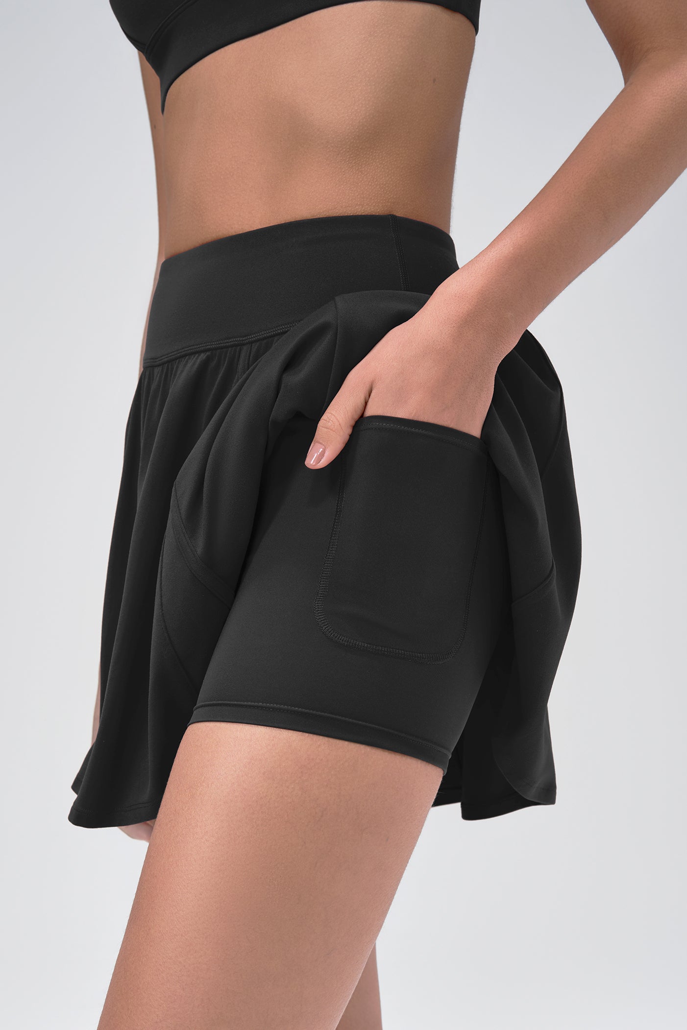 Der Sport-Rock Pia vereint sportlichen Komfort mit einem femininen Look. Dank integrierter Shorts mit Taschen und elastischem Bund bist du bereit für jedes Workout – oder den Alltag. Der fließende Schnitt sorgt für maximale Bewegungsfreiheit bei jedem Schritt.